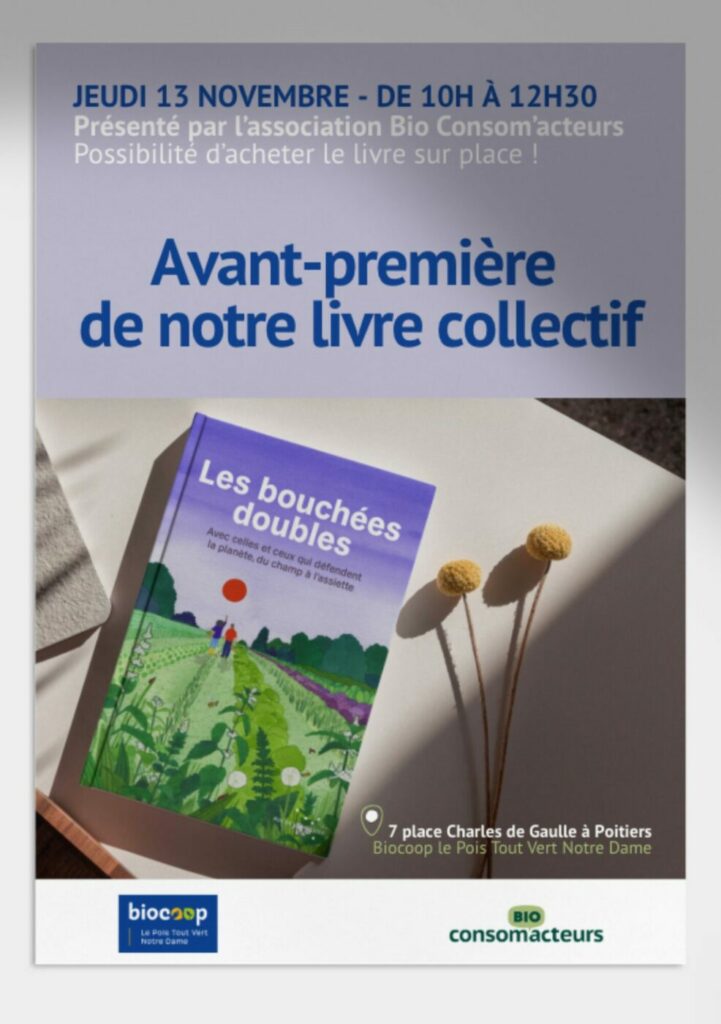 Et pour bien commencer ce périple, une avant-première du livre collectif Les Bouchées doubles vous attend au magasin Biocoop Le Pois Tout Vert Notre-Dame !