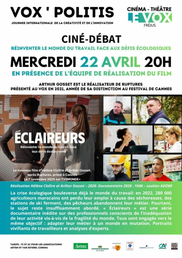 Venez découvrir et discuter du film Éclaireurs, réalisé par Hélène Cloître et Arthur Gosset le mercredi 22 avril, à 20h, au Vox (Fréjus) ! Séance en présence de l’équipe de réalisation du film.