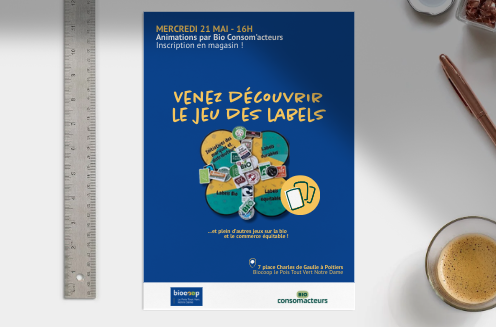 Bio Consom’acteurs se rend à Poitiers pour animer, le temps d’une après-midi, des ateliers de sensibilisation au Pois Tout Vert – la Biocoop du centre-ville pictavien. Nous organiserons des jeux et des animations autour des labels alimentaires, pour que les consommateur.ices se repèrent dans la “Jungle des labels” et autres mentions valorisantes. A qui se fier pour des produits bio et équitable ? Comment éviter les pièges et avoir l’argumentaire pour convaincre ses proches ? Mini-jeux d’enquête et décryptage codé : découvrons ensemble les principes fondateurs du commerce équitable ! Pour démêler la réalité de la simple publicité, participez à nos ateliers le 21 mai à partir de 16h !