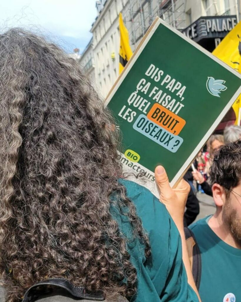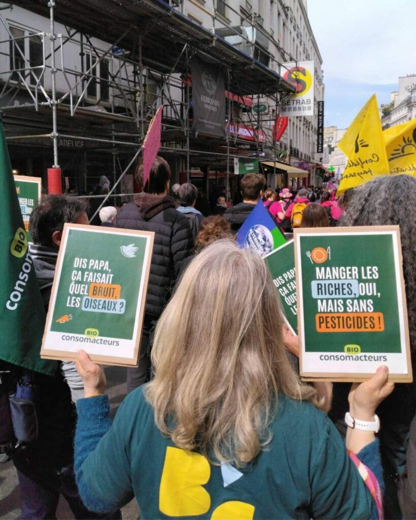 Samedi dernier, un peu plus de 2 500 personnes ont défilé dans les rues de Paris, réunies par une même demande : interdire l’usage des pesticides ; et par une même indignation : Laurent Duplomb et ses lois assassines (n’hésitez pas à signer la pétition contre la loi Duplomb 2 juste ici). Bien entendu, Bio Consom’acteurs y était, pancartes à la main et poing levé ! Ce moment nous a permis de vous rencontrer, de nous fédérer, et de défiler ensemble au rythme des slogans engagés !