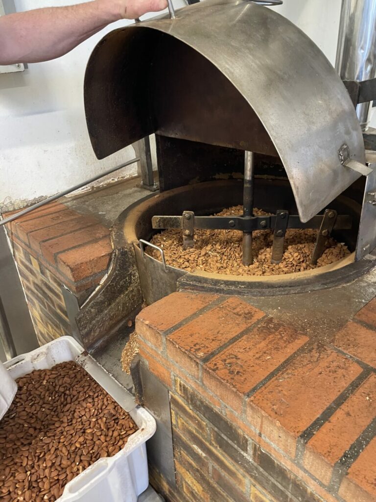 “Les meules de pierre, permettent une texture plus granuleuse (par rapport à des meules à billes de métal, qui donnent des textures très lisses et homogène), et une meilleure préservation des qualités nutritionnelles des fruits secs.